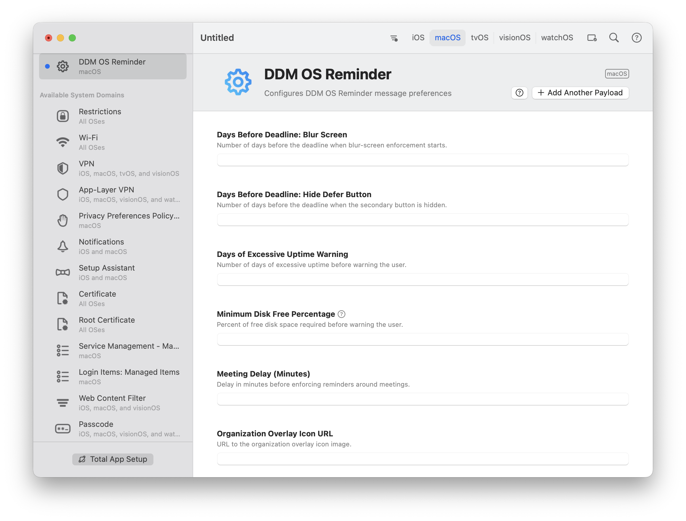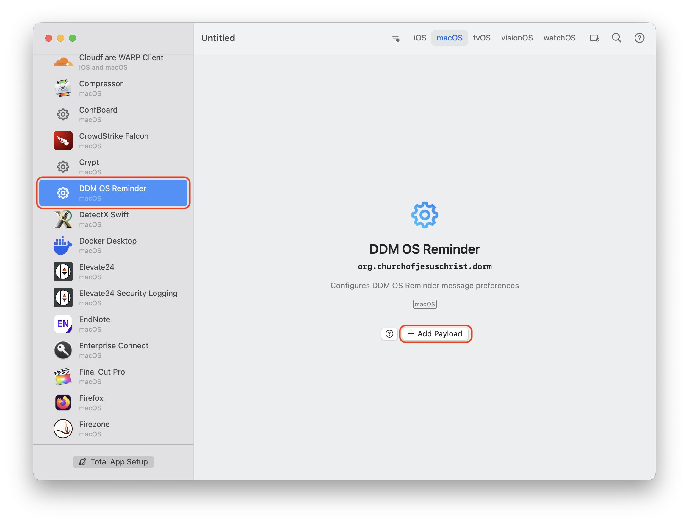 The workflow applies to many apps and macOS features. For this post, we’ll use DDM OS Reminder as the example payload.