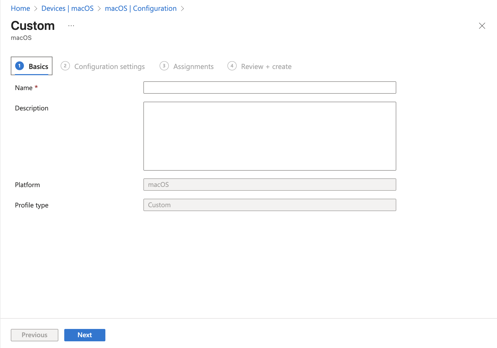 - Set a Custom configuration profile name (shown locally under System Settings → Device Management).